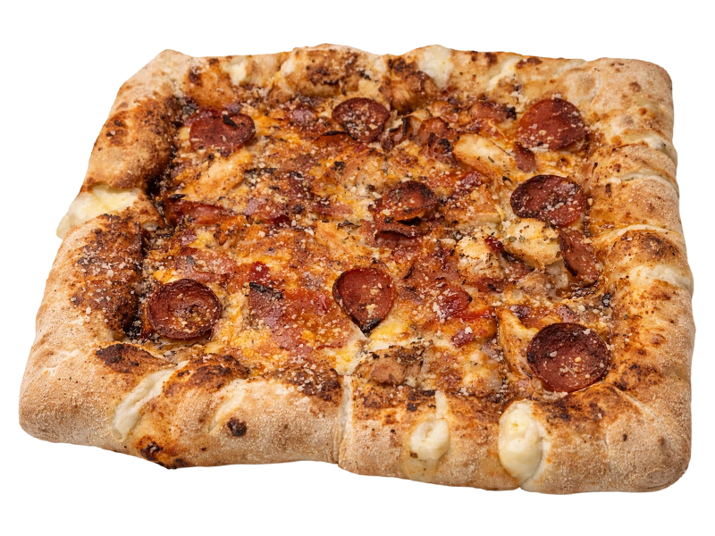 Pollo / Cebolla / Bacon / York / Salchichas / Atún / Pimiento Verde / Pimiento Rojo / Alcaparras / Emmental / Carbonara / Picante / Maíz / Champiñón / Pepperoni / Ternera / Piña / Rodajas de Tomate / Aceitunas Negras / Palitos de Mar